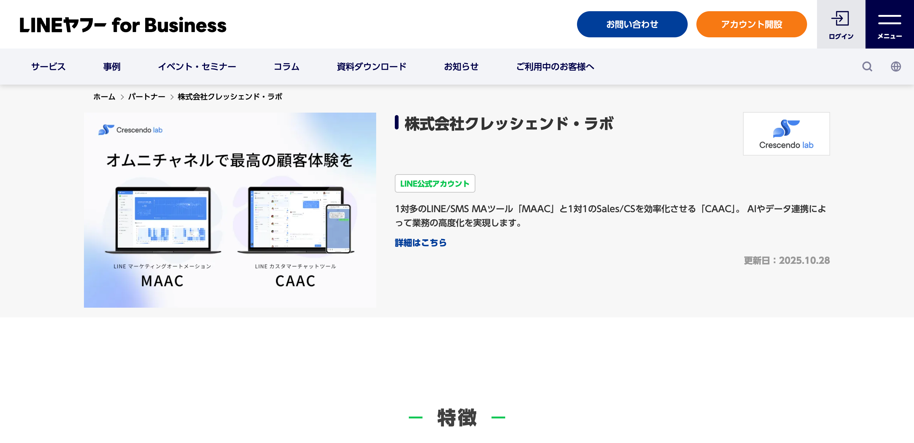 先日発表した当社リリース「『LINEヤフー Partner Program』において『Technology Partner』のコミュニケーション部門に認定」を受け、当社の製品ページがLINEヤフー社の「LINEテクノロジーパートナー」の公式サイト上に公開されました。