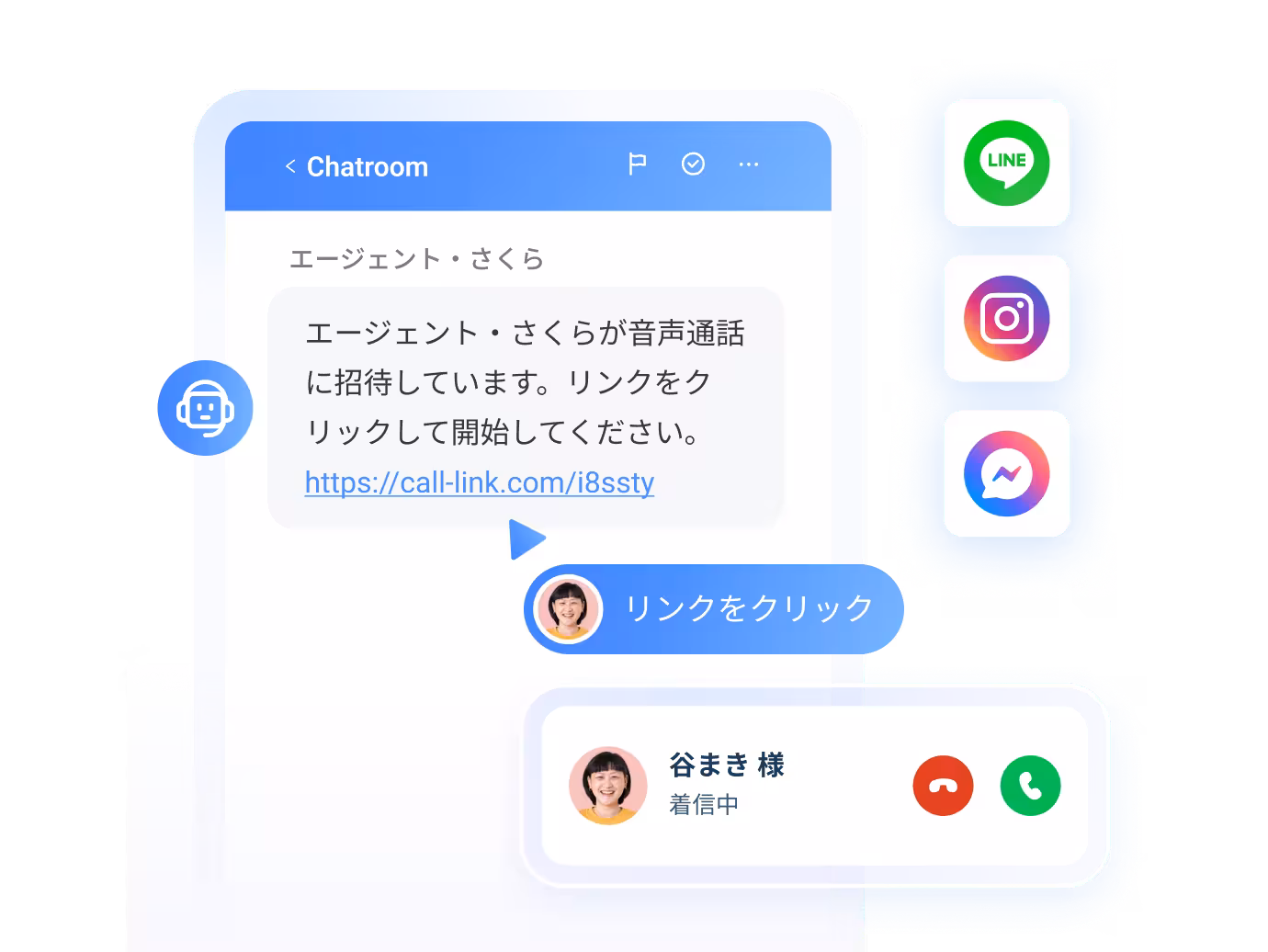 LINE・SMS・Webチャットと同じMAACの管理画面で、音声通話も一元対応。デバイスを問わず、どこにいても通話の発着信が可能です。チャネルをまたいだ顧客対応の抜け漏れをなくし、対応品質を均一化します。