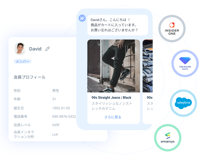 Customer Data Hubに保存されているデータを利用し、1対1のやり取りをパーソナライズ化することができます。