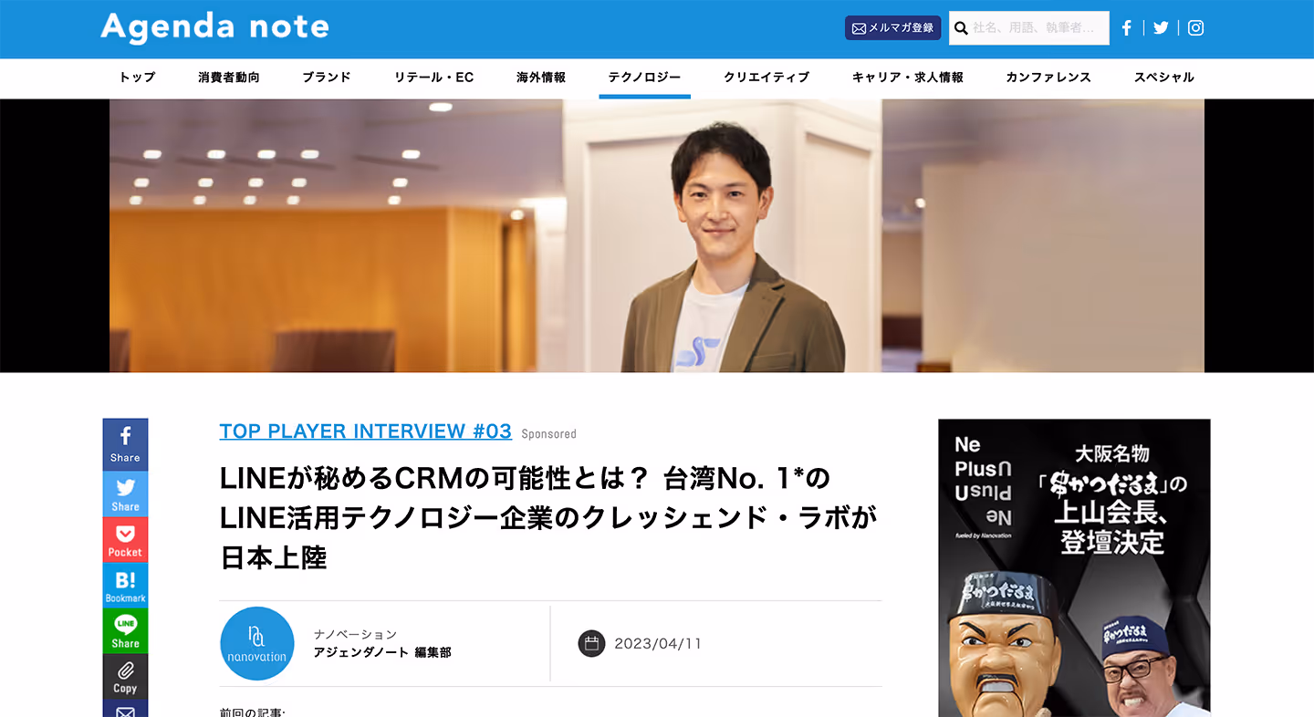 マーケティング専門のWebメディア「Agenda note(アジェンダノート)」にクレッシェンドラボ日本事業統括・猪股唯耶のインタビューが掲載されました