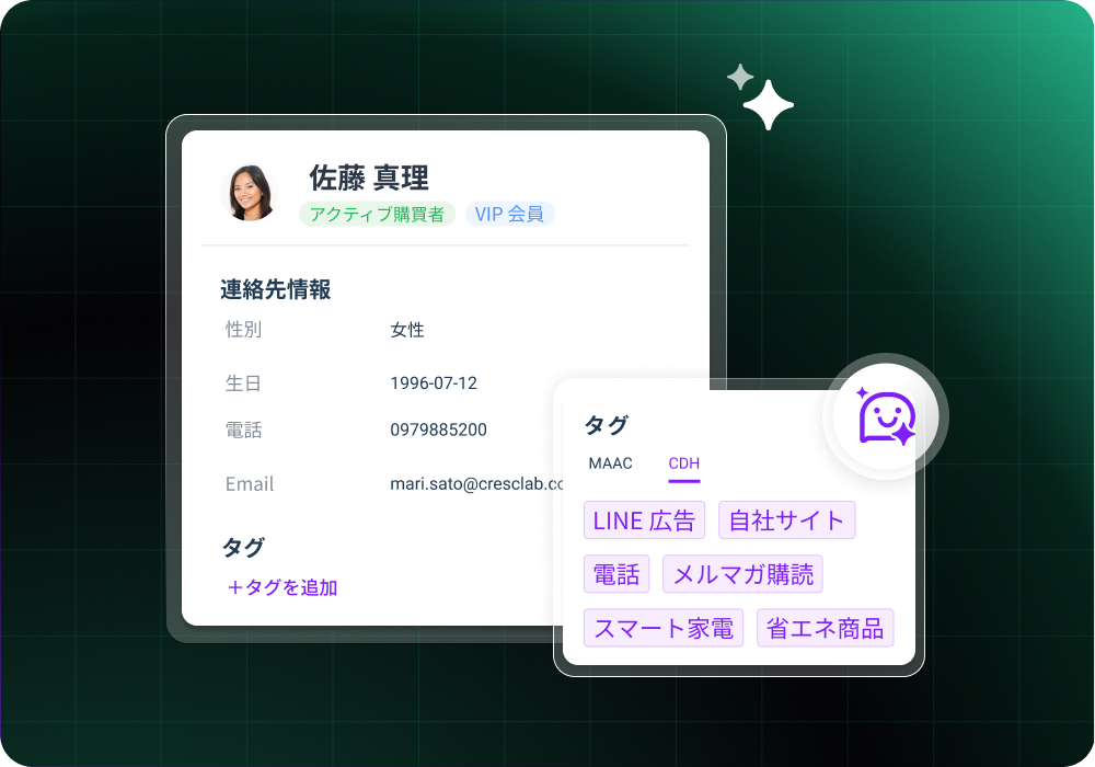 AI搭載のマーケティングツールを使えば、よりスマートで正確、かつ自動化された方法で顧客とつながることができ、効率性・パーソナライズ・顧客体験・ロイヤルティ・コンバージョン率の向上を実現します。