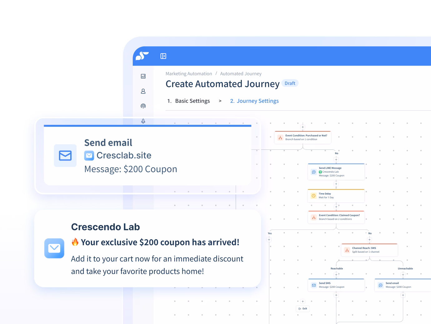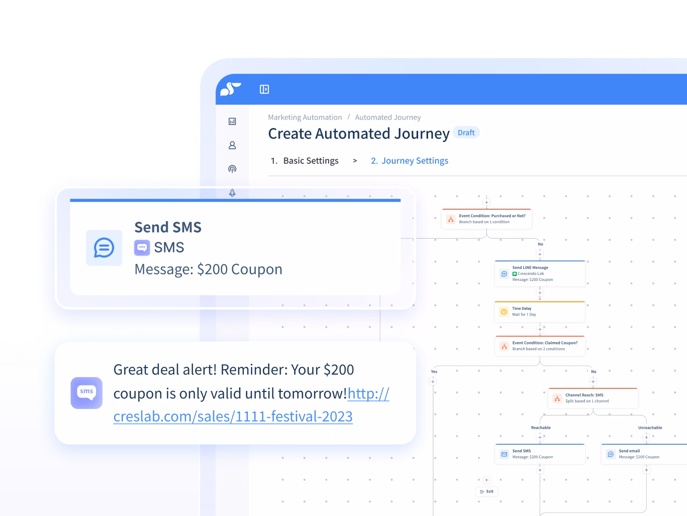 เมื่อข้อความทาง LINE ไม่ถูกเปิดอ่านหรือถูกบล็อก ระบบจะสลับไปส่ง SMS โดยอัตโนมัติ มั่นใจได้ว่าข้อเสนอที่จำกัดเวลา (Time-sensitive) และการแจ้งเตือนสำคัญจะส่งถึงมือลูกค้าเสมอ