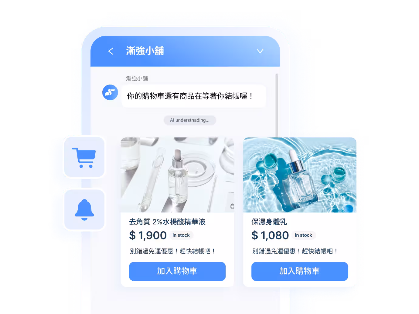 有了即時的消費足跡搜集,AI 引擎將在全時段智慧運作,鎖定過路訪客自動跳出個人化的推薦訊息,協助銷售團隊加速成交!